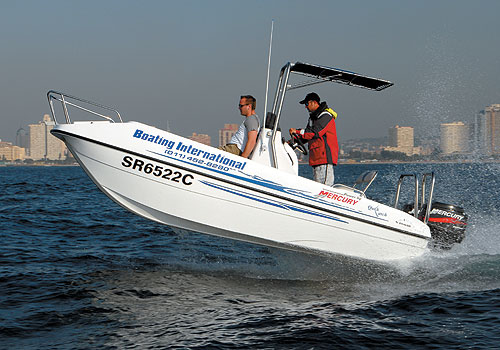 Despite not being warmed up first, one touch of the ignition had the Mercury 60hp Big Foot motors purring on the transom and ready for action. On the 160 with me were Silan Naiker from Lowrance SA and Durand Boshoff from Boating International. It’s always better to have the average-sized crew on board for a test, as testing alone will not give a true reflection on how a boat actually rides and performs.