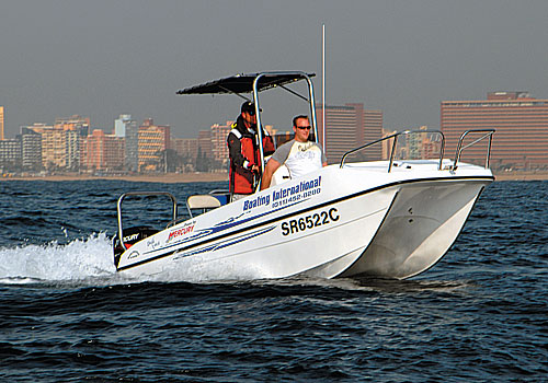 We soon motored out of Durban harbour to put the 160 through its paces out at sea. I think it’s an inbred thing in all of us, to want to floor it when first trying out a boat or a car — just to check the power. Unfortunately, being in the harbour you can’t do that. I would definitely not like to be clocked by the new camera that’s been fitted on the end of the North Pier — speed limit 35kph.
