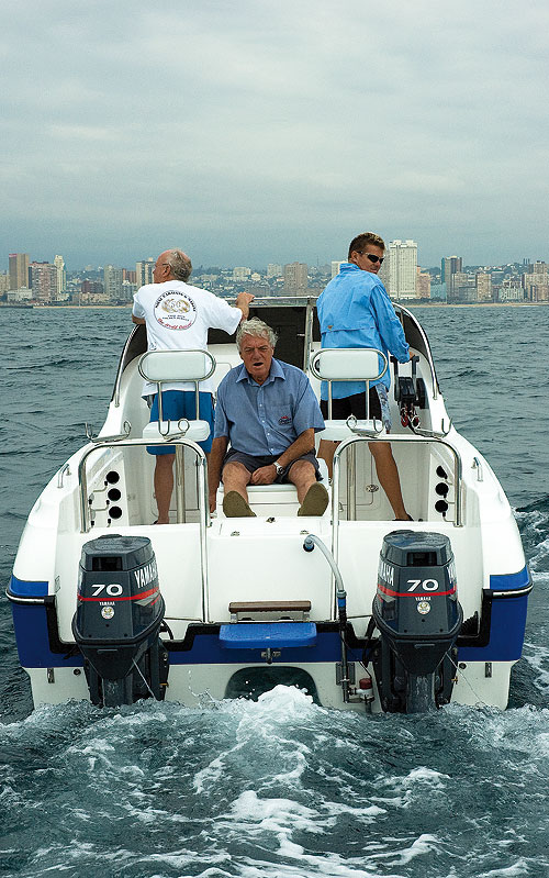 This new Benguela 530 FC was rigged with two 70hp two-stroke Yamaha outboards. The controls were normal sidemount cable controls. Bill Harrison from Natal Caravans & Marine had fitted hydraulic steering to her, which makes the cable controls ultra-smooth and easy to use.