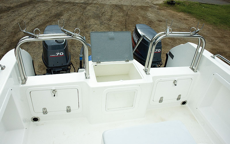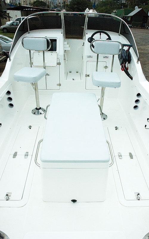Fuel hatches are fitted in the middle of the deck with fish hatches set into the deck. On both versions of the craft, very neat rod holders are set into the gunnels.
