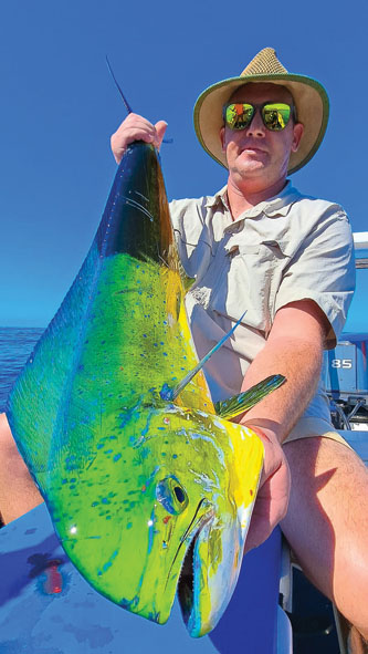 Lastly, if you do get some action, particularly from dorado or tuna, you need to be on top of your game and ready to capitalise on the bite. The aim is to keep those fish in the area for as long as possible before they move off, so if a rod goes away, while one angler is fighting their fish, I will often leave the other lines out and increase the chumming activity.