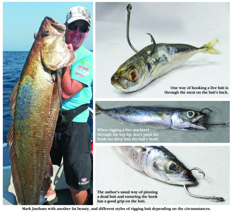 When rigging a live mackerel, I generally push the hook through the top lip, but not too deep into the bait’s head as you may kill it and then the action of the live bait will change, and you won’t get a pull. You need to keep your live bait swimming as naturally as possible.