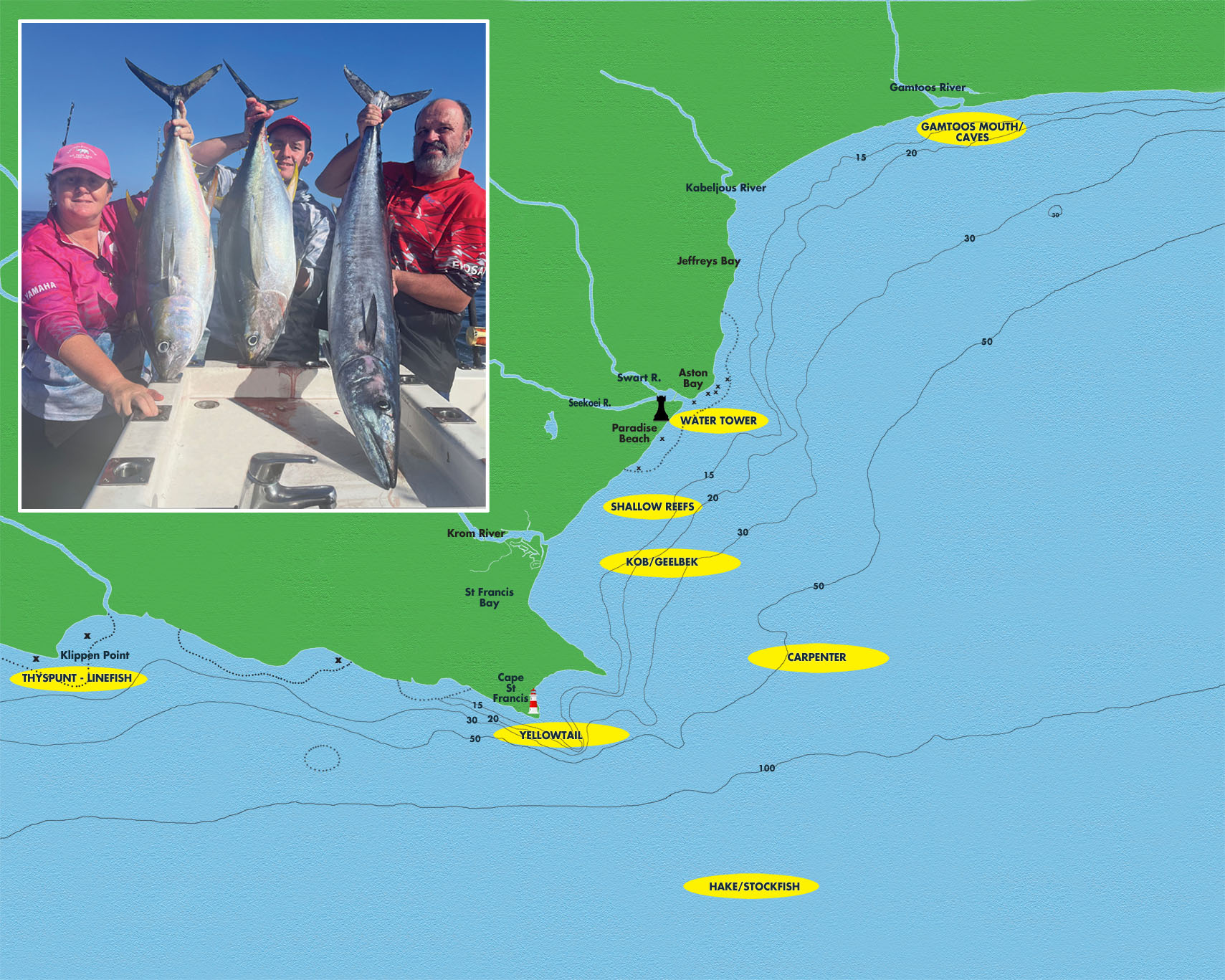 7. Yellowtail 34° 13.344’ S 24° 51.657’ E