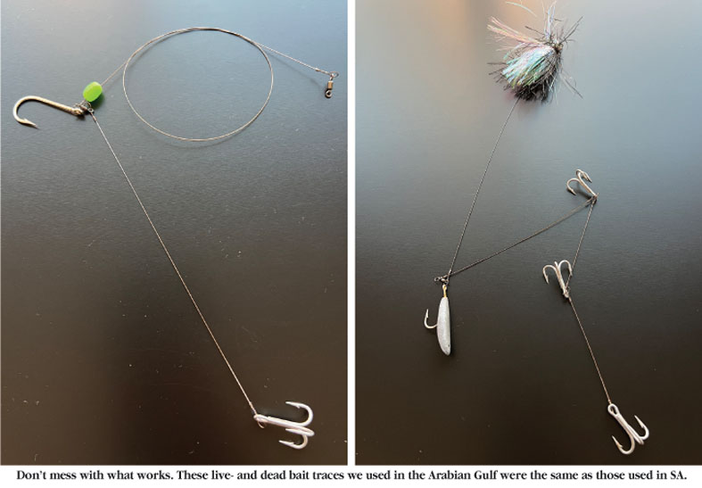 It was absolutely amazing to jump on a boat and fish with the same style, tackle, traces, technique, and hunting attitude that is in my DNA, and to see it being applied in the Arabian Gulf by local anglers who fish exactly the same way as we South Africans do on our east coast – slow trolling with dead- and live bait.